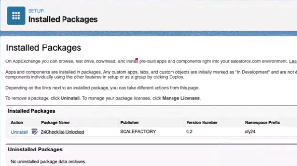 In Setup > Installed Packages you can see the packages that are installed on your org. After the installation 24Checklist will be available.