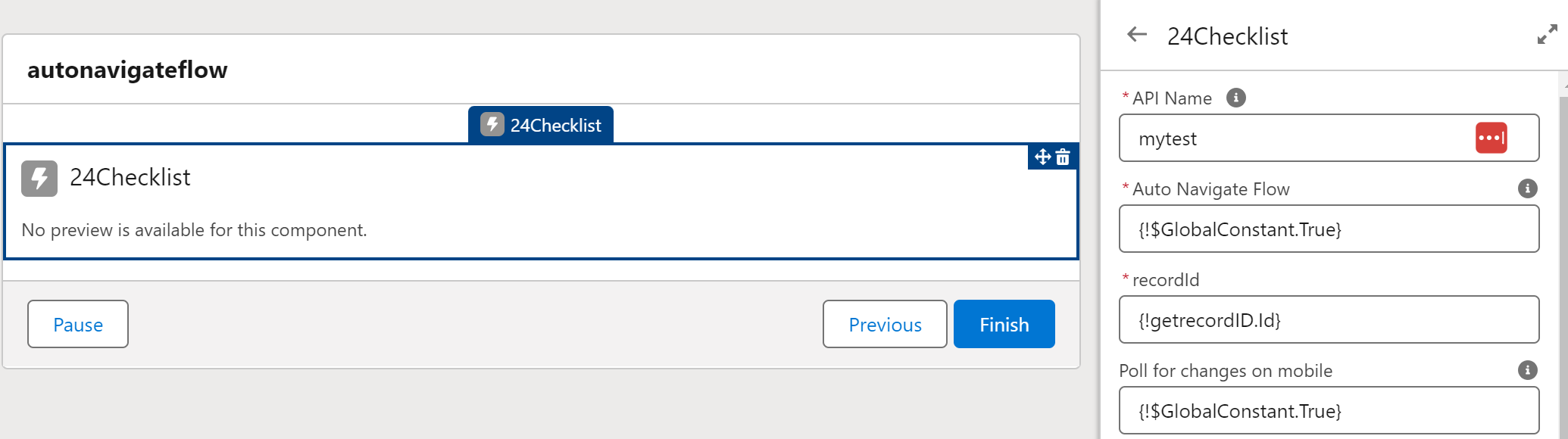 It is now possible to integrated checklists in screenflows and show the checklists that are relevant to the recordID passed to the checklist component. Furthermore, we have extended 24Checklist with an Auto Navigate Flow option. When enabled, you can can auto-navigate to the next screen once all checks of the checklist have been confirmed.