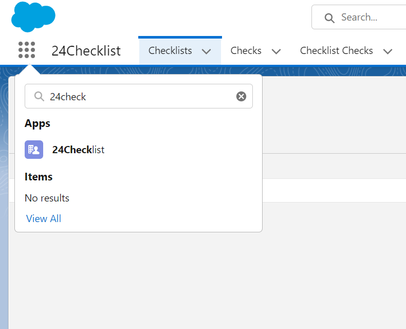 After installing the app, you can open the 24Checklist manager via the App Launcher. This is the app that will allow you to define new checks and checklists, as well as to specify when these checklists should be presented to users.